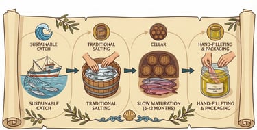 While we catch our anchovies fresh daily to ensure quality, our true secret lies in waiting. Following authentic Sicilian methods, our fish are placed in salt barrels and left to mature for 6 to 12 months. This slow aging process is non-negotiable, it is what creates the distinctive reddish-purple hue and the deep, rich umami flavor our clients expect. Once matured, every single fillet is meticulously separated by hand, ensuring a texture and consistency that machines simply cannot replicate.