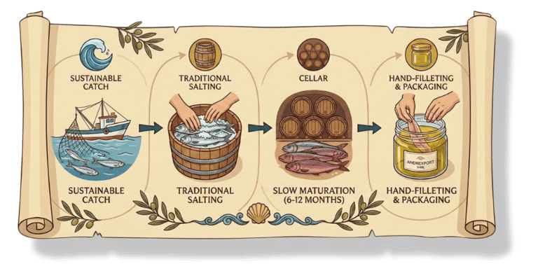 Andrexport Sarl specializes exclusively in premium salted anchovies. Bridging Moroccan heritage with Sicilian mastery, we deliver exceptional quality to international markets, backed by over 20 years of expertise and a team of 500+ artisans.